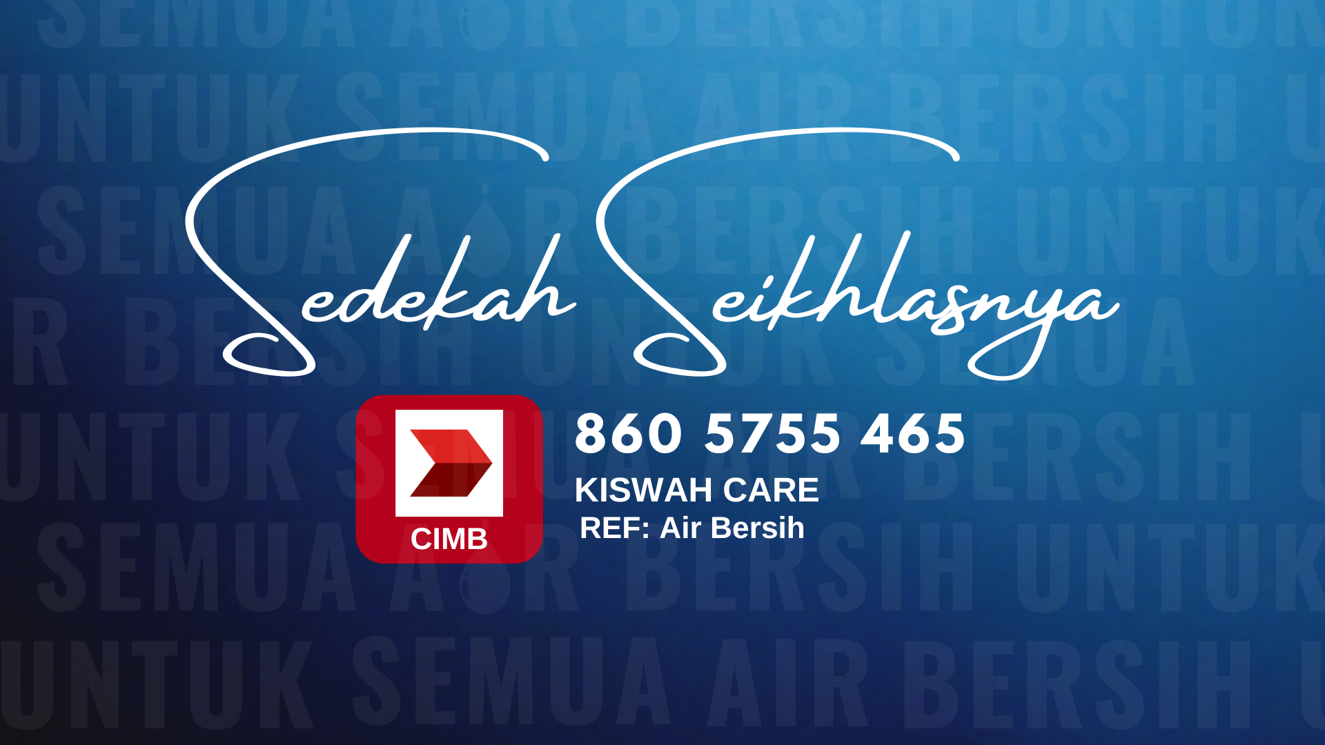 Air bersih hasil sumbangan anda ini akan dimanfaatkan oleh penduduk-penduduk kampung, jemaah masjid dan surau, pelajar-pelajar yang sedang menuntut ilmu, dan mereka yang dari latar belakangkan kurang berkemampuan.