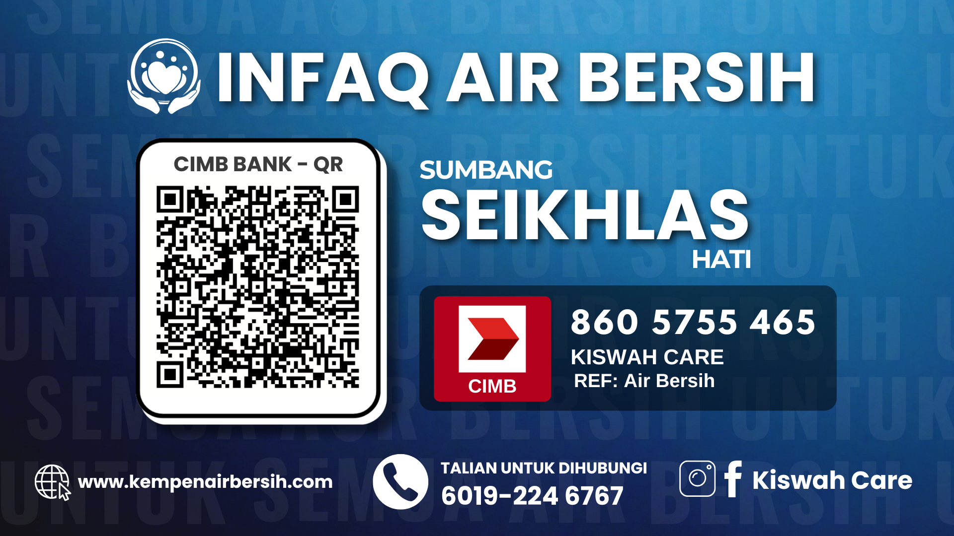 Sungguh besar pahala anda jika anda infaq bersama Kempen Air Bersih ini walaupun hanya mampu menaja sebahagian kos mesin, tetap ada bahagian anda didalamnya.