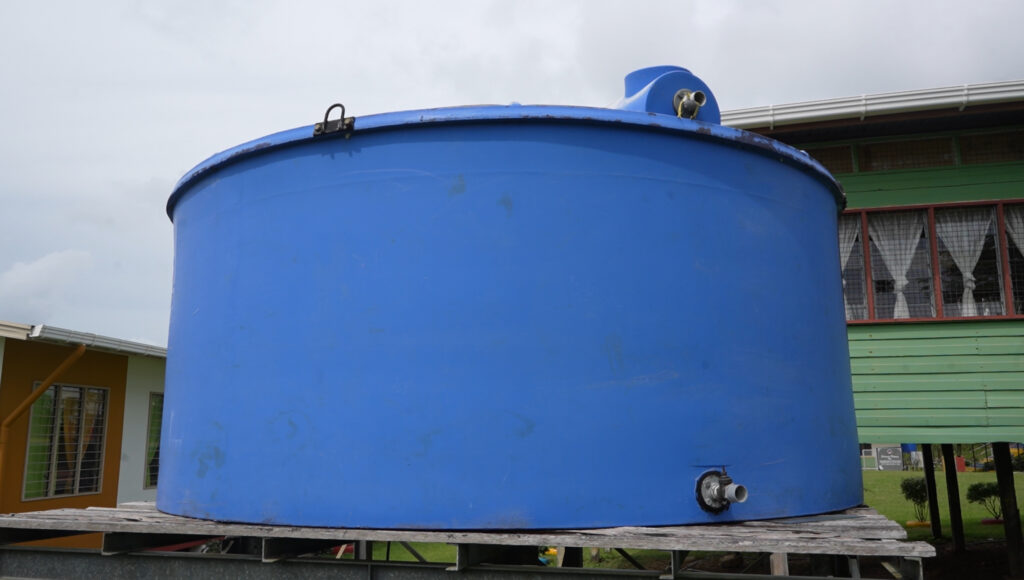 Air hujan yang jatuh dari bumbung terus ke dalam tangki ini, terus diminum oleh budak-budak yang dahaga tanpa mengira kebersihan.